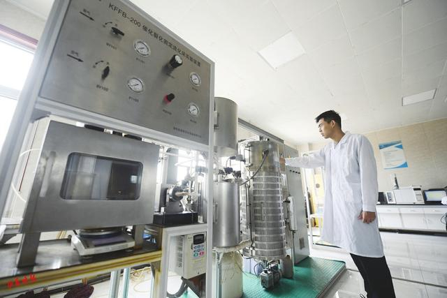 6.腾茂科技实验室内,工作人员正在操作催化裂化固定流化床实验装置。