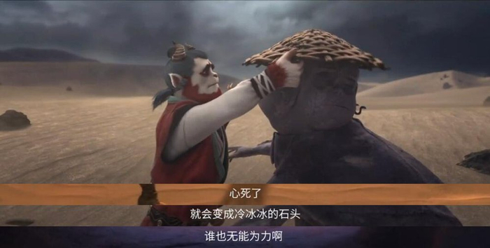 日本经典动画《天空战记》里也有类似的设定。每个人都有黑暗面,为了抵抗黑光流的诱惑,就必须和自己的黑暗面做战斗,否则就会被黑暗吞噬。反派BOSS湿婆本身就是被过载的黑光流吞噬的。回到《山海经之再见怪兽》,看上去温文儒雅的火烛有了嫉妒的执念后,被强大的黑灵所吞噬。