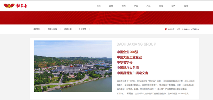 近日,湖北知名白酒品牌稻花香获得了2022年《中国500最具价值品牌》白酒品牌第4位。登陆稻花香集团官网以及浏览其官方微信公众号内容,《消费者报道》发现,这家1982年诞生于湖北省宜昌市龙泉镇的企业旗下拥有多个分布于不同行业的企业,名列“中国企业500强”,酒业品牌“稻花香”有着“中华老字号”“中国新八大名酒”“中国馫香型白酒定义者”等称号,其所在的龙泉镇为全国“唯一中国白酒名镇”。