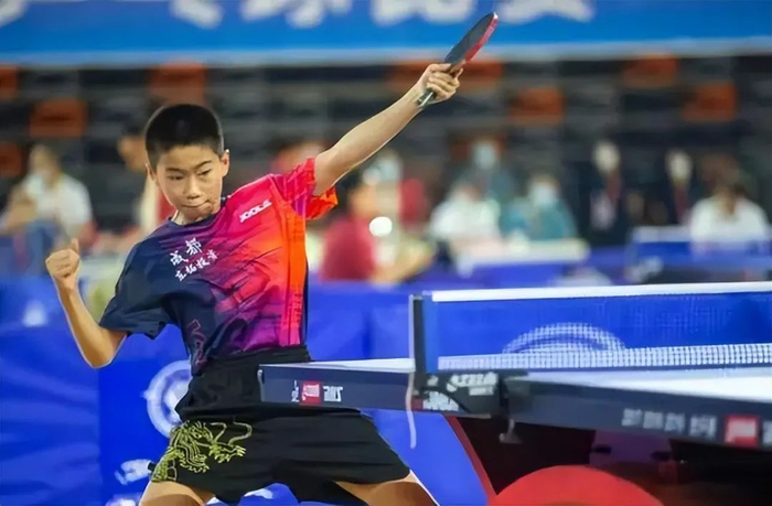 球桌上,12岁的刘阳是本届省运会上的第一个“四金王”。敢打敢拼,绝不后退,是他战无不胜攻无不克的“法宝”;