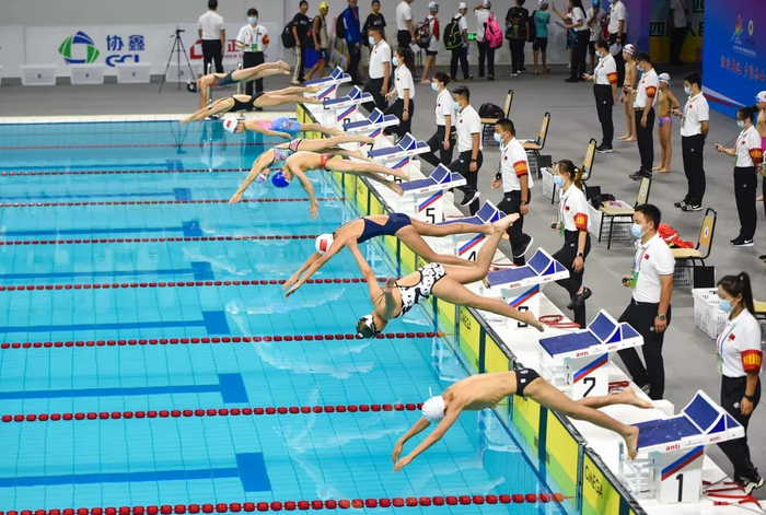 泳池中,樊恬伽从小将变成了“老将”,她忘掉上届“九金王”的光环,重新出发,从心出发,劈波斩浪,再创新高;