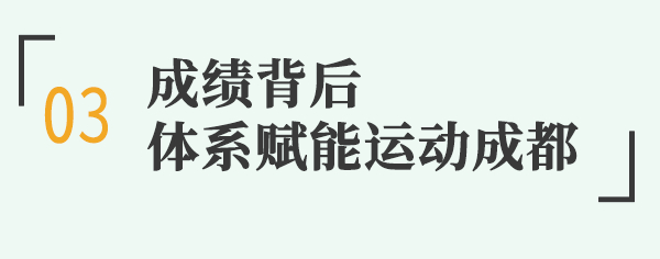 赛事驱动,人才筑基。成都市每年开展赛事不少于500场,近千万人次参与,为后备人才的发掘、培养创造有利条件。此外,校园青少年竞技后备人才队伍的培养效果,也在此次省运会赛场上得到了充分的检验——各区(市)县根据实际情况建设的学校高水平运动项目预备队,畅通了青少年竞技人才培养通道,夯实了竞技人才基础队伍,为成都市代表团输送了大量潜力新星。