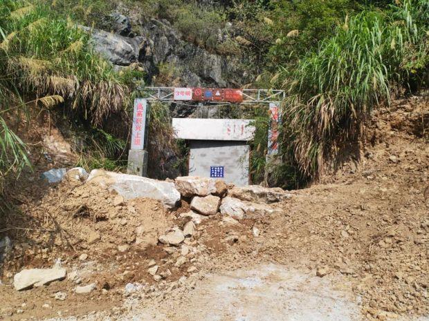 徒步上山过程中,钦堂乡工作人员给我们发来了这两天用水泥和砖块封洞口的照片。