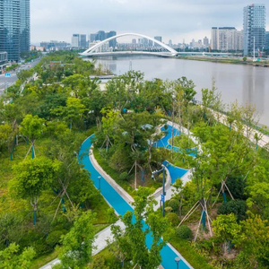 滨江生态公园绿道(一期)位于奉化区城市转型示范区核心区,城市展览馆北侧,北至顺浦路,南至葭浦路,全长约6公里,营造了多层次的都市水岸空间,通过慢行道将公园内的大欧河畔、琎琳新庙、奉心水岸、丝路水岸、都市水岸等重点区段有机串联,为市民提供一个“青山隐隐、湖水迢迢、春风袅袅、晚风漫漫”的闲暇佳处。