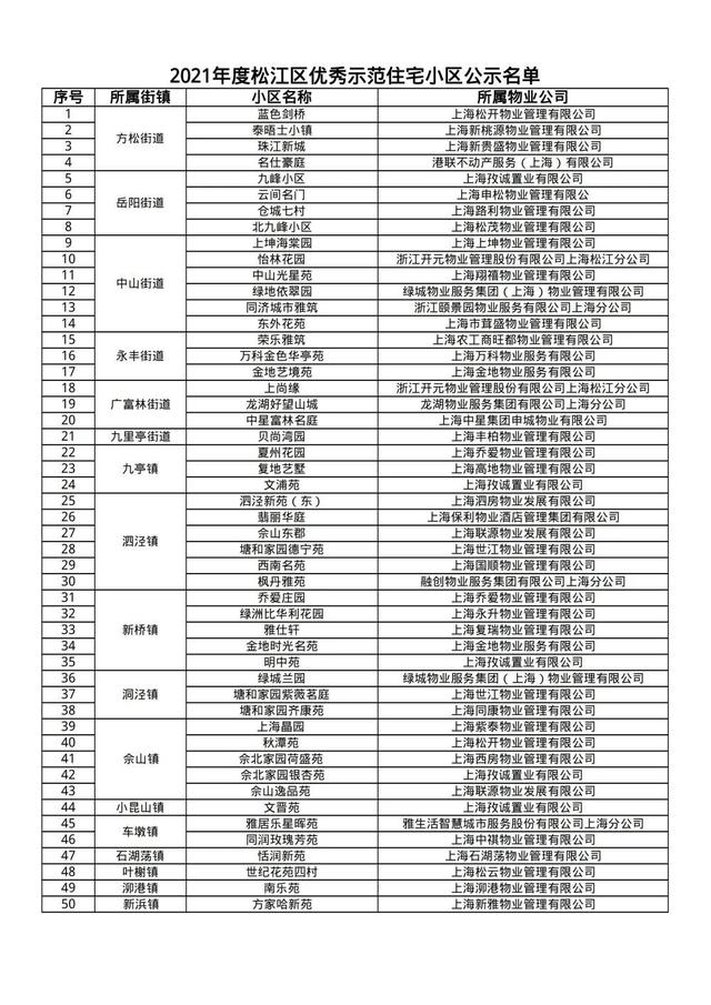 2021年度松江区优秀示范住宅小区、物业优秀项目经理名单正在公示,有你熟悉的吗?
