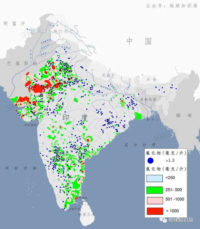 印度地下水污染可见一斑(印度地下水氟与氯污染分布 参考:CGWB)▼