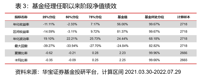 我们选取主动权益型基金作为同类样本进行业绩比较分析。样本选取普通股票型基金、偏股混合型基金以及灵活配置型基金中权益仓位均值(20210330-20220729)大于等于60%。
