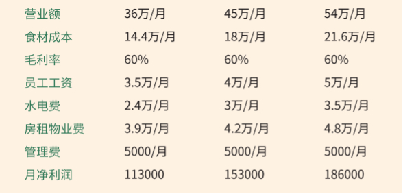 除了上面的三项加盟费用,经营一家面积为200平方米的门店,加盟商还需要购买厨房设备、桌椅、餐具、门头标牌、监控收银系统等,再加上门店装修,实际投入在80万元左右。