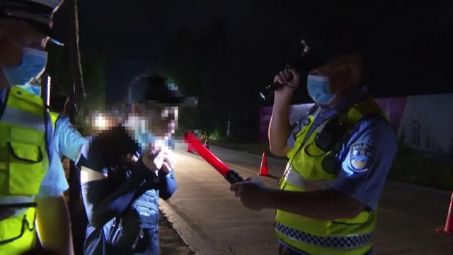8月6日0时,钦州市公安局交警支队一大队民警、辅警在南珠东大街大转盘路段设置临时执勤点开展夜查酒驾整治行动。