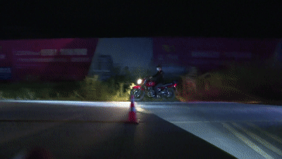0时15分许,一辆红色普通二轮摩托车在经过检查点时突然加大油门,疯狂逃窜,无视执勤人员的指挥,欲冲卡逃避检查,结果被后方的执勤人员拦下并带回执勤点检查。