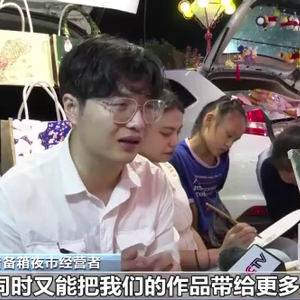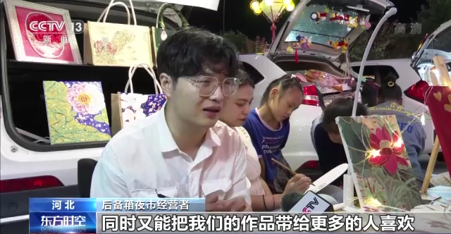 后备箱夜市经营者:现在有了后备箱集市,我们觉得这是一个很好的窗口,既增加了我们的收入,也丰富了市场,也把我们的作品能够有更多的人喜欢,我觉得非常好。