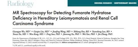 近日,上海交通大学医学院附属仁济医院放射科和泌尿科联合发表临床研究论文,在线发表于影像学领域顶级期刊《Radiology》,通过对罕见肾癌亚型磁共振代谢标记物进行成像,为遗传性平滑肌瘤病和肾细胞癌的诊断提供了新方法。
