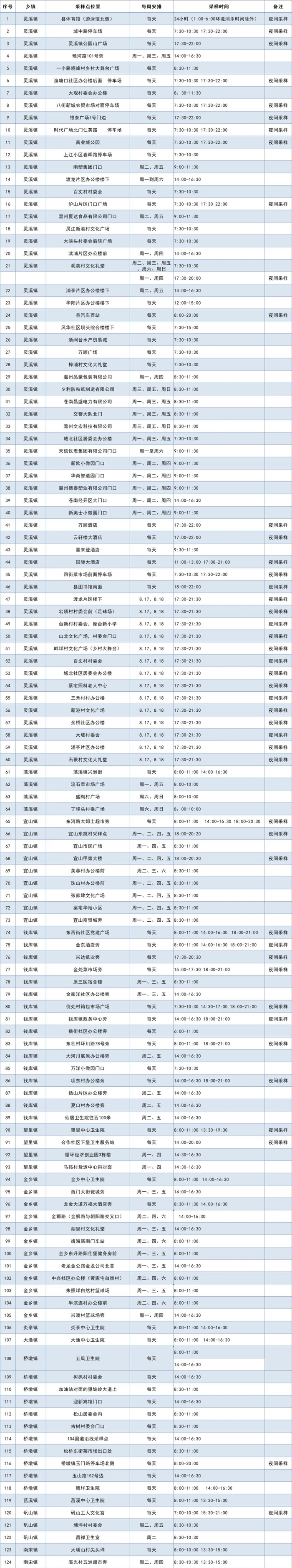 苍南县便民核酸采样点一览表(8月17日-8月18日)