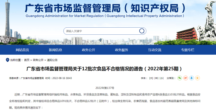 中国质量新闻网讯 近期,广东省市场监督管理局组织抽检肉制品、水果制品、炒货食品及坚果制品、蛋制品、淀粉及淀粉制品和食用农产品等6类食品1103批次样品。