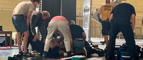 ·拉什迪倒在遇刺现场。