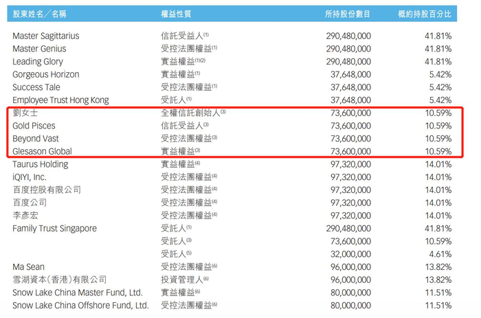2020年,稻草熊娱乐向港交所发起冲击,招股书显示,公司第一大股东为刘小枫,上市前持股58.41%,拥有80.43%的表决权,此外,爱奇艺持股19.57%,刘诗诗持股14.8%,赵丽颖持股0.79%。