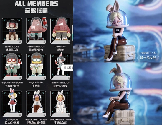 COOLABO宇宙朋友全系列及“骑士兔女郎”隐藏款玩偶。 图/泡泡玛特抽盒机小程序截图