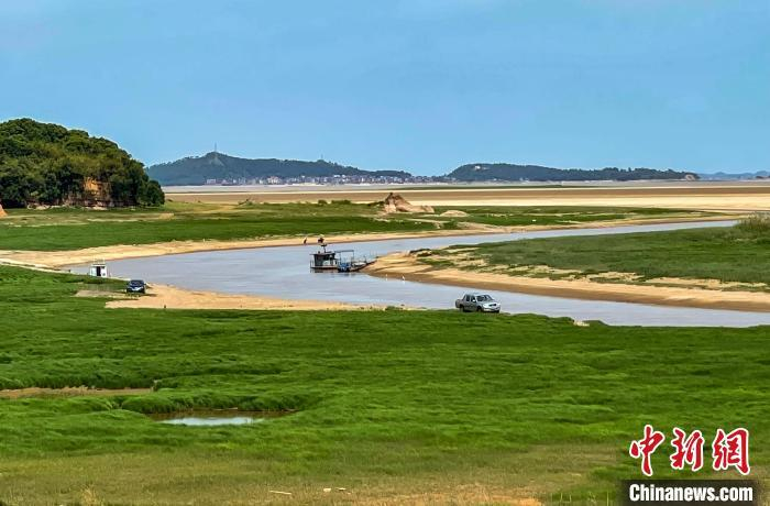 资料图:8月13日,在江西省九江市都昌县周溪镇枭阳10号附坝附近拍摄的干涸的鄱阳湖水域。 傅建斌 摄
