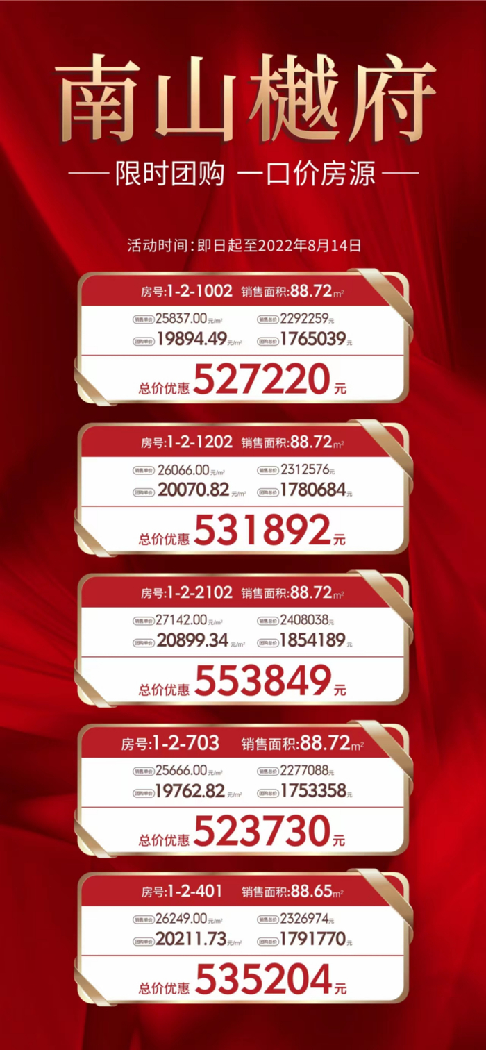 再比如翡丽天玺,在售138-206㎡户型,备案均价约2.8万/㎡,目前项目房价可打9.5折,同时送车位;城投南山长投·领峯,在售107-143㎡户型,备案均价3万/㎡,目前项目有9.3-9.5的折扣力度。