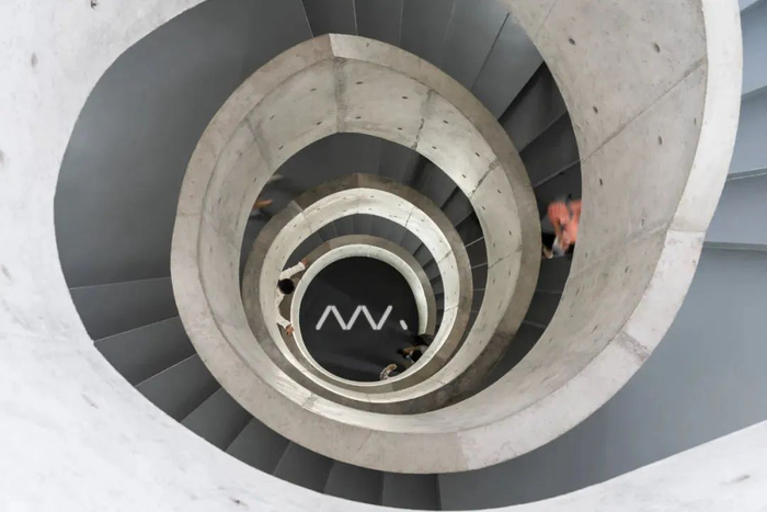 馆内的旋转楼梯保留了以前的工业建筑特色,风格粗犷的水泥墙与周围精致的装潢形成对比。