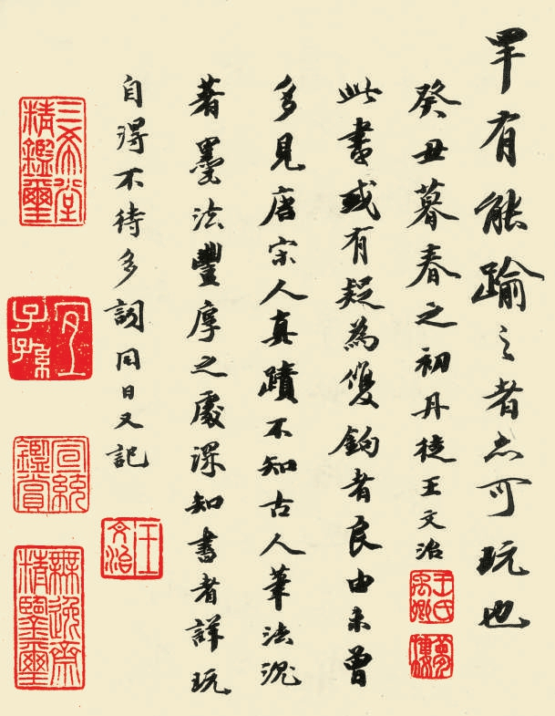 1.王文治书学王羲之、米芾和董其昌,实是自有其高妙之处,因为这正是书法史中的帖学一脉,从技法上来说,本身是一脉相承的,米学王,董学米,这样可以顺受其正,吸收精华。