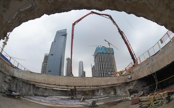 大型机械在武汉市武昌滨江核心区地下空间环路工程工地施工。新华社图