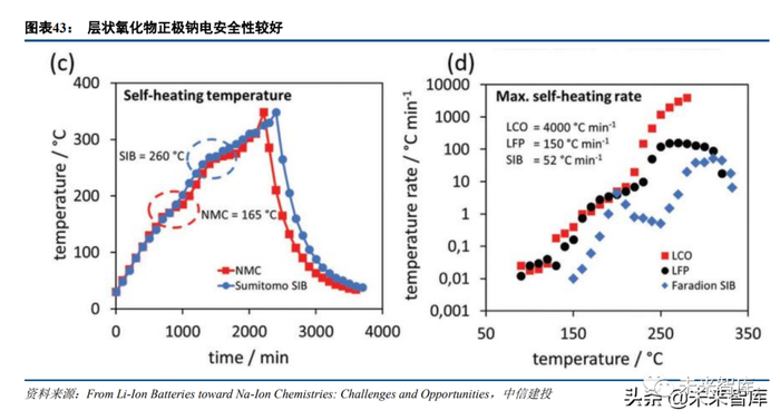 我们中性预期,采用前述层状氧化物或普鲁士蓝/普鲁士白正极、有机电解液、硬碳负极体系的钠离子电池, 其安全性不劣于对应规格的磷酸铁锂电池。如果负极选用更高容量的材料,则电池安全性能可能会承压;未来 大电芯单体的安全性如何,也值得长期关注。