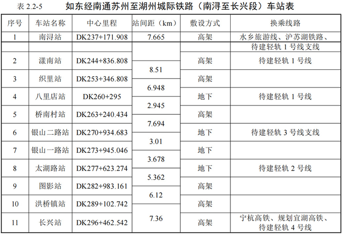 如东经南通苏州至湖州城际铁路(南浔至长兴段)全线设站11座,其中7个高架站,4个地下站。