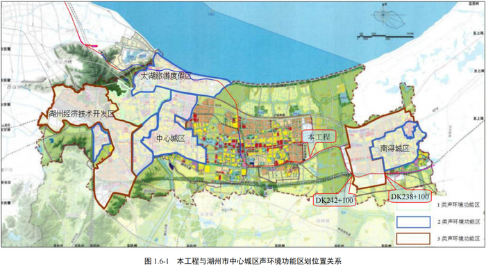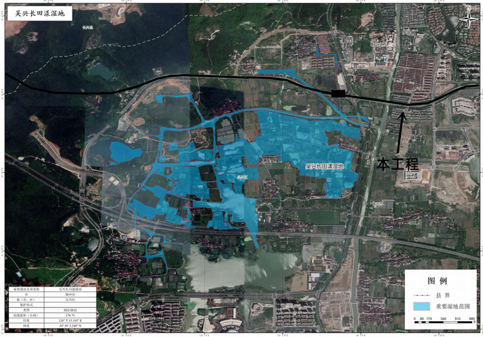 之后线路穿过弁山进入长兴县境内,先后沿沪渝高速、宁杭高铁向西北走行,经太湖龙之梦乐园设图影站,
