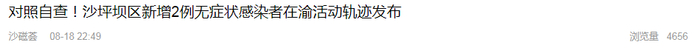 8月18日,重庆市沙坪坝区新型冠状病毒肺炎疫情防控指挥部发布关于沙坪坝区新增2例无症状感染者在渝活动轨迹的通告。