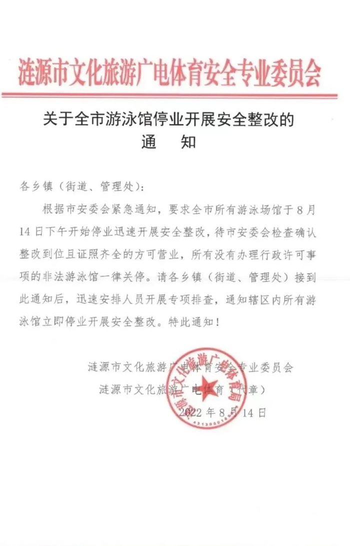“目前全市的游泳馆都已经不开门了,在停业整顿开展安全检查,至于何时恢复营业还没有通知。”