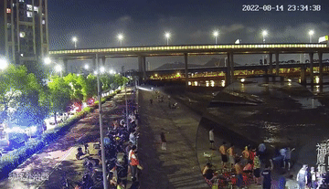 岸边的民警使用强光手电回应海上闪烁的灯光