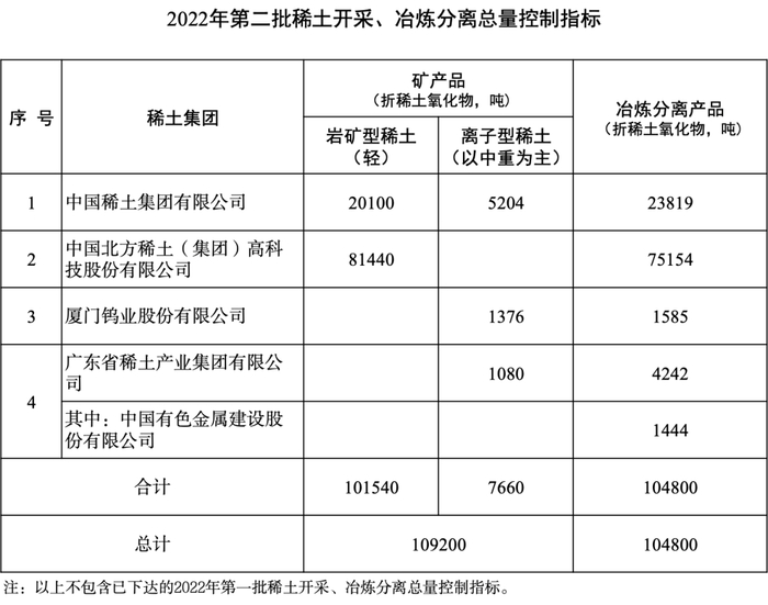 今年第二批稀土配额指标下达