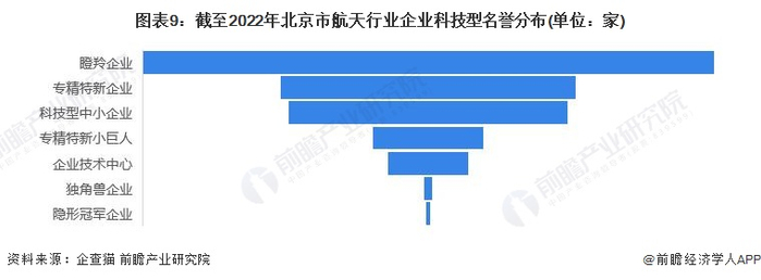 北京市航天行业企业中瞪羚企业较多