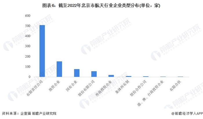 根据中国企业数据库企查猫,目前北京市存续和在业的航天行业企业近500家,全部企业中以有限责任公司为主,目前共有超500家,其次为独资企业。