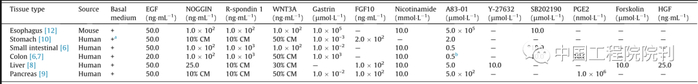 表1 消化系统类器官培养基成分
