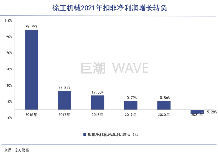*保持了正向增收增利的徐工机械,在2022年一季度也戛然失速,不仅净利润增速同比下降18.61%,连营收也下降了19.79%。