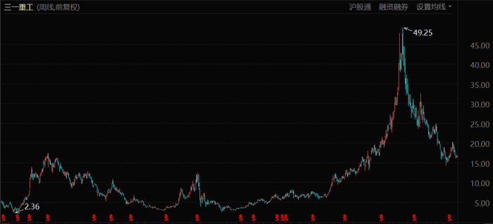 其实不光是三一重工和山河智能在前几年表现高光,当时但凡有头有脸的和工程机械沾边的上市公司,无不风风光光,富得流油。