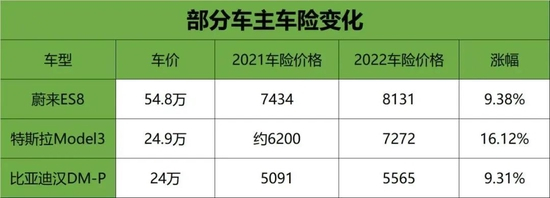 大平洋车险经纪人姚滨表示:“今年新能源车保费报价同比普遍涨了10%左右,尤其是25万元以上的车型,涨幅更大。”