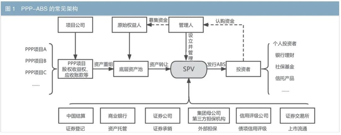 PPP项目资产证券化产品(以下简称“PPP-ABS”)的常见架构见图1,其总体流程包括以下5个关键环节: