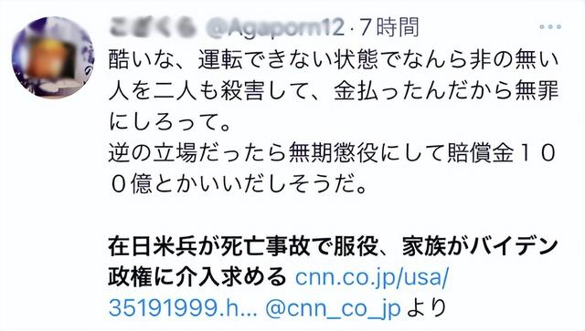 CNN日语版也于18日发布了这篇报道,并在日本网络上引发争议。有人批评称:“真过分,因为陷入无法驾驶的状态而杀了无辜的两个人,还命令说‘我付了钱,给我判无罪’。这要是反过来,估计得判无期徒刑和100亿日元赔偿。”
