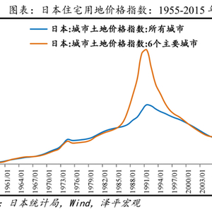 大城市跌幅明显大于中小城市。日本统计局数据显示,1992-2000年间,日本六大主要城市住宅用地价格下跌55%,中小城市(六大主要城市以外的城市)跌幅仅19.4%。