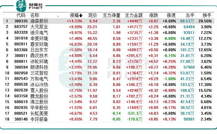 8月18日,空气能热泵概念股走强!截至收盘,大元泵业(603757.SH)喜提8天4板,迪贝电气(603320.SH)涨停,迪森股份(300335.SZ)大涨逾14%,申菱环境(301018.SZ)、盾安环境(002011.SZ)、鼎汉技术(300011.SZ)等纷纷跟涨。