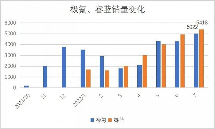 在最新的7月销量数据中,两个新品牌也均已突破月销5000辆的门槛。
