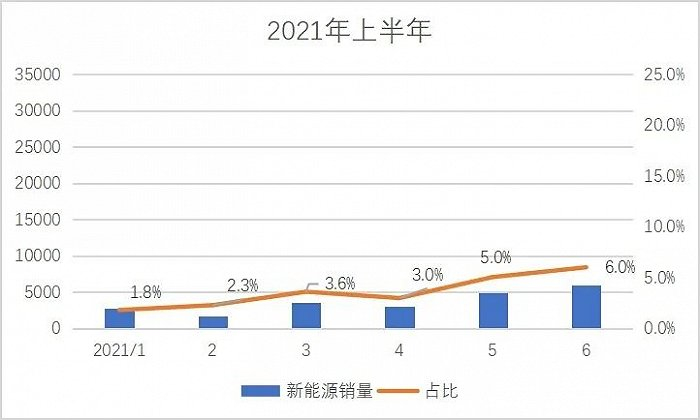 2020年吉利汽车总销量132万辆,新能源占比仅有5%左右。