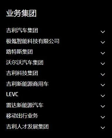 吉利控股旗下乘用车领域除了上文提到的品牌外,还有主攻海外的宝腾、极星,高端市场的路特斯、沃尔沃,越野新能源品牌雷达;商用车领域则有远程商用车、伦敦电动车以及曹操出行。