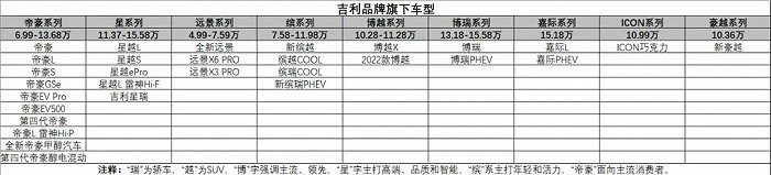 不像长城一般专注于SUV、皮卡,也不像比亚迪紧抓混动和纯电,吉利的车型、动力种类都要复杂得多。