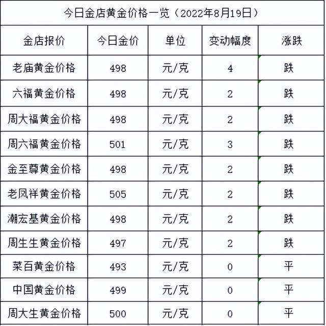 金价跌破500啦!2022年8月19日各大金店黄金价格多少钱一克?