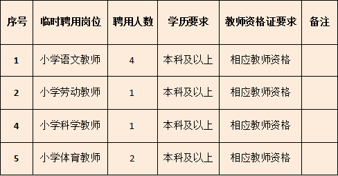 教师资格证要求:小学及以上教师资格证。有较强的语言表达能力,吃苦耐劳,身体健康,品行端正,有责任心,无违法乱纪行为。