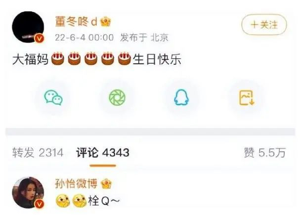 有眼尖的网友发现,今年6月份,董子健在微博给孙怡庆祝生日的时候,称呼孙怡为“大福妈”。
